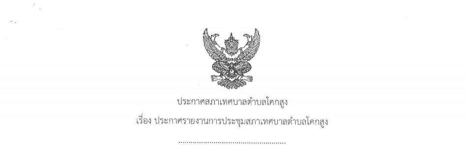ประกาศสภาเทศบาลตำบลโคกสูง เรื่อง ประกาศรายงานการประชุมสภาเทศบาลตำบลโคกสูง สมัยสามัญ สมัยที่ ๔ ประจำปี พ.ศ. ๒๕๖๘