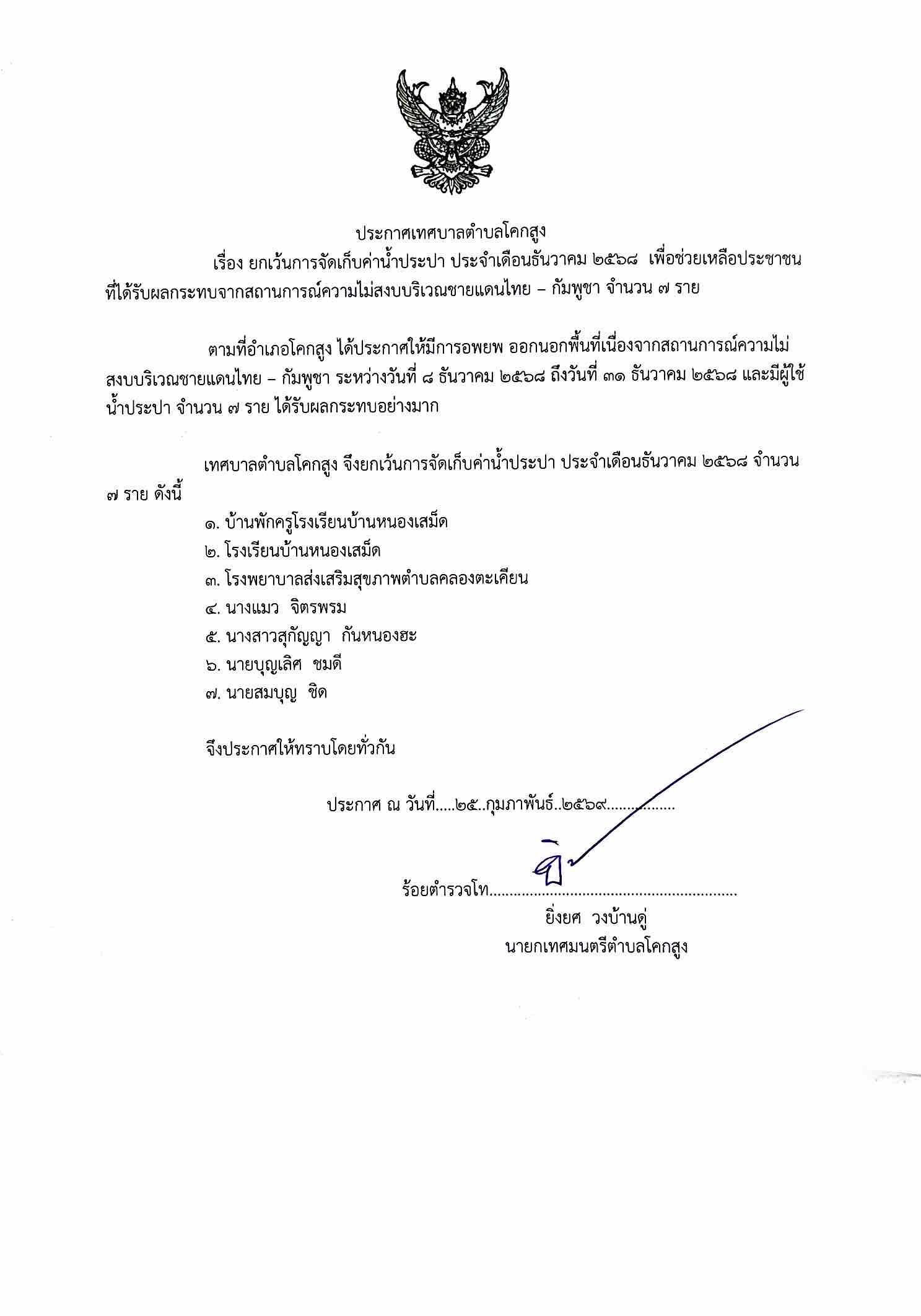 - ประกาศเทศบาลตำบลโคกสูง , 6 พฤศจิกายน 2568