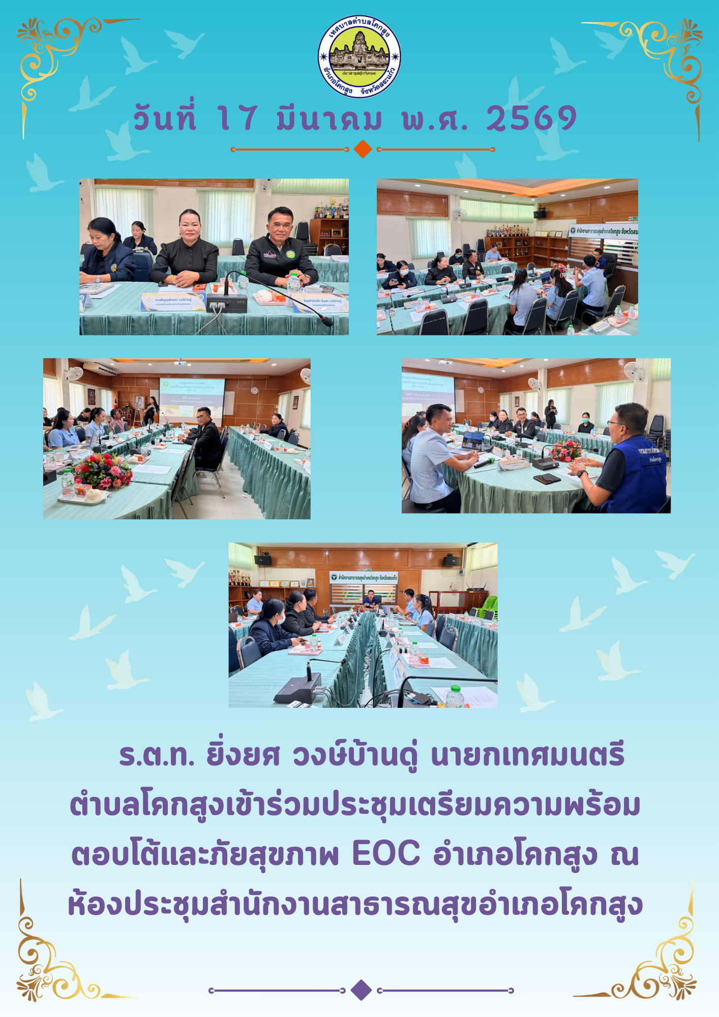 - เข้าร่วมประชุมเตรียมความพร้อมตอบโต้และภัยสุขภาพ Eoc อำเภอโคกสูง , 17 มีนาคม 2569