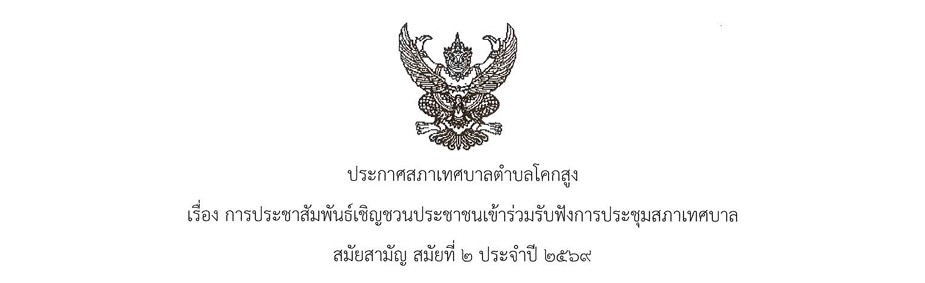 - ประกาศสภาเทศบาลตำบลโคกสูง กำหนดสมัยประชุมสภาเทศบาล สมัยสามัญ ประจำปี พ.ศ. ๒๕๖๙ และสมัยประชุมสภาเทศบาล สมัยแรก ประจำปี พ.ศ. ๒๕๗๐ , 26 กุมภาพันธ์ 2569