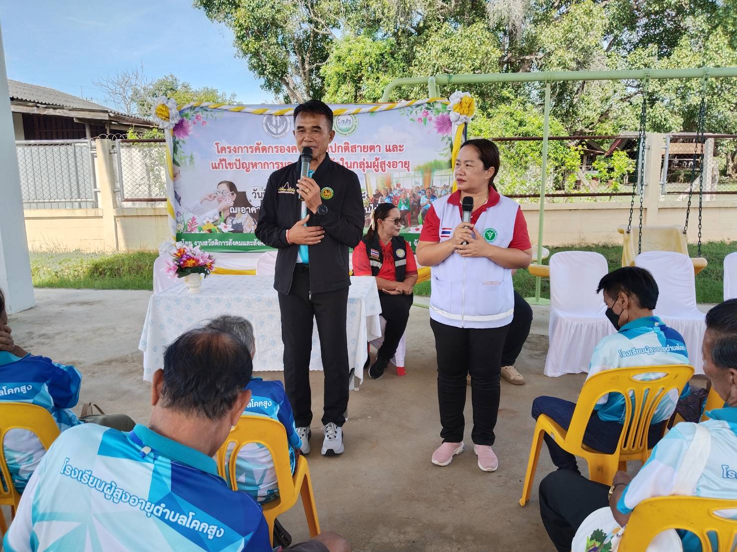 นายสุทธินันท์ วงชารี หัวหน้าสำนักปลัดเทศบาล และคณะผู้บริหาร ข้าราชการ พนักงานจ้าง ลูกจ้าง เข้าร่วมโครงการพัฒนาคุณภาพชีวิตผู้สูงอายุในโรงเรียนผู้สูงอายุ ประจำปีงบประมาณ พ.ศ. 2568 มอบแว่นให้แกผู้สูงอายุ
