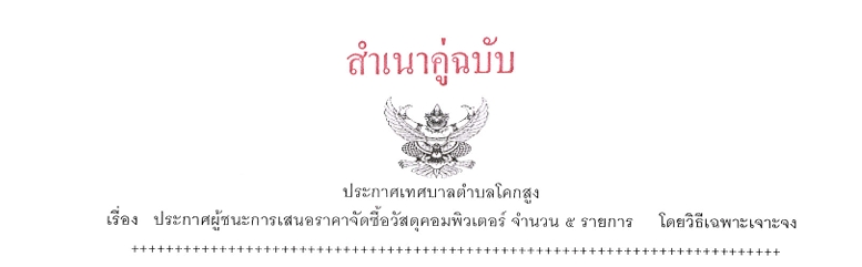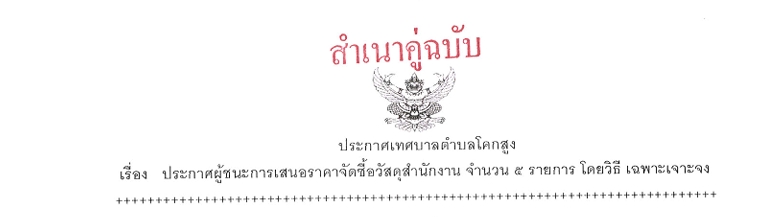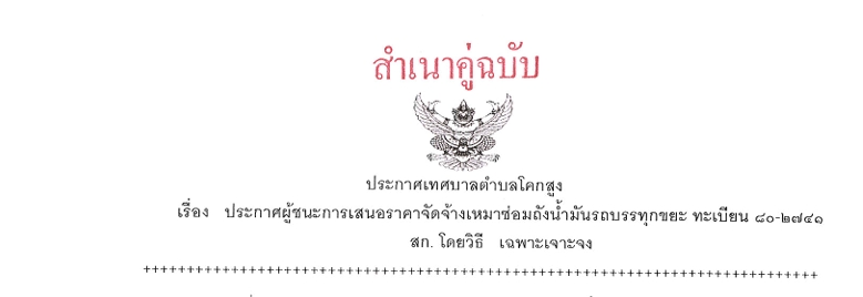 ประกาศเทศบาลตำบลโคกสูง เรื่อง ประกาศผู้ชนะการเสนอราคาจัดจ้างเหมาซ่อมถังน้ำมันรถบรรทุกขยะ ทะเบียน ๘๐-๒๗๔๑ สก. โดยวิธี เฉพาะเจาะจง